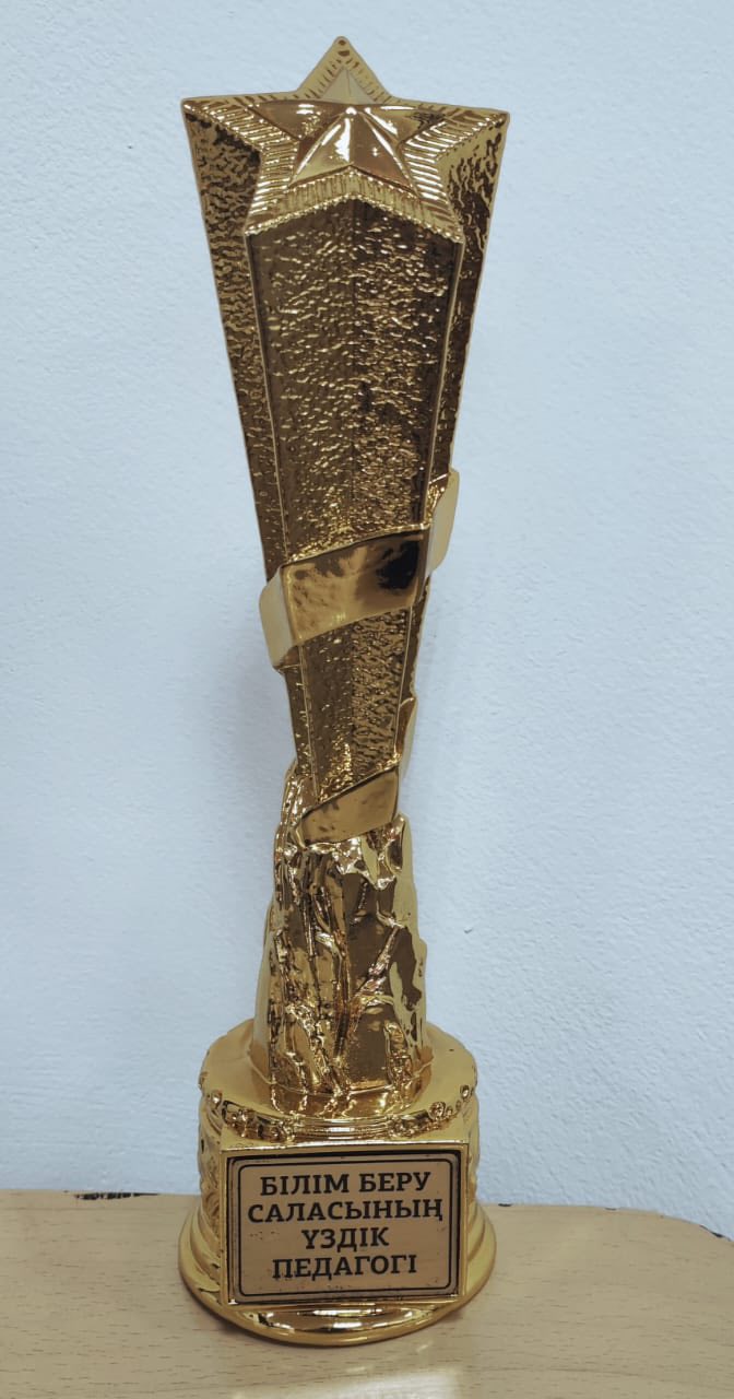 Байқау қорытындысы бойынша I дәрежелі дипломмен және «БІЛІМ БЕРУ САЛАСЫНЫҢ ҮЗДІК ПЕДАГОГІ» төсбелгісімен марапатталды.
